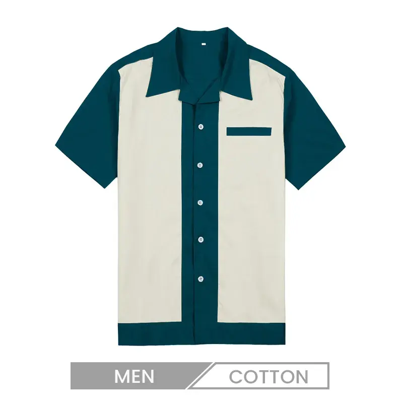 Men Casual Color Contrast Single-Breasted Short-Sleeved Custom Bowling Shirt