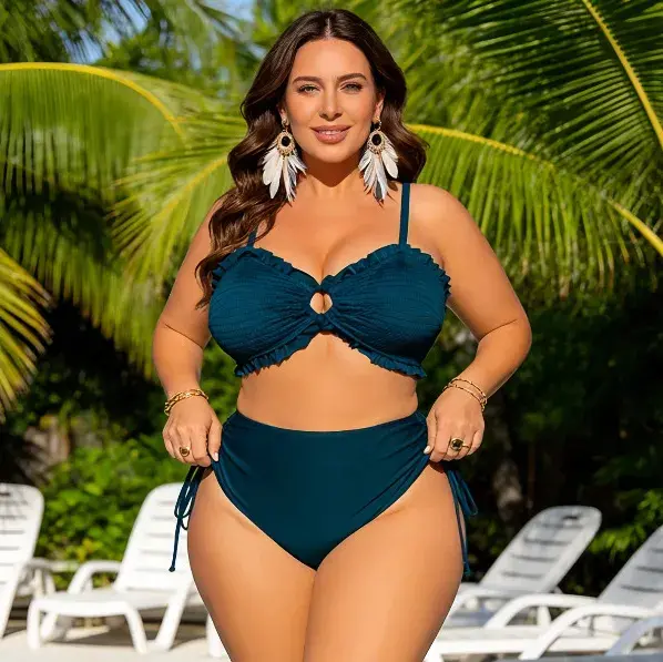 Women Fashion Sexy Plus Size Solid Color Bikini Swimsuit